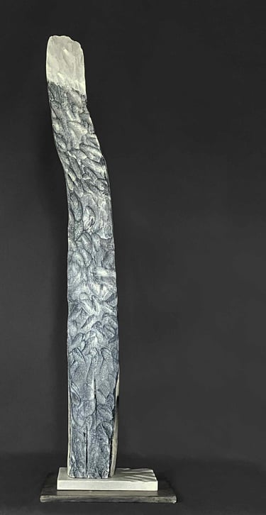 I bring her home, place her caringly in the light and sit quietly, giving her time to reveal her secrets. From that Silence, Creative Intelligence offers suggestions of who she might become, a new expression of her loveliness, her power. From there I become both participant and witness, the molder and the molded. The sculpture becomes an expression of me, and I of it. The same Intelligence that moved the ocean for so long now, moves me.